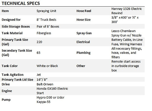 Units are designed specifically for 8' truck beds but options are available for smaller beds, flatbeds, and vans. See Custom Equipment for additional information.